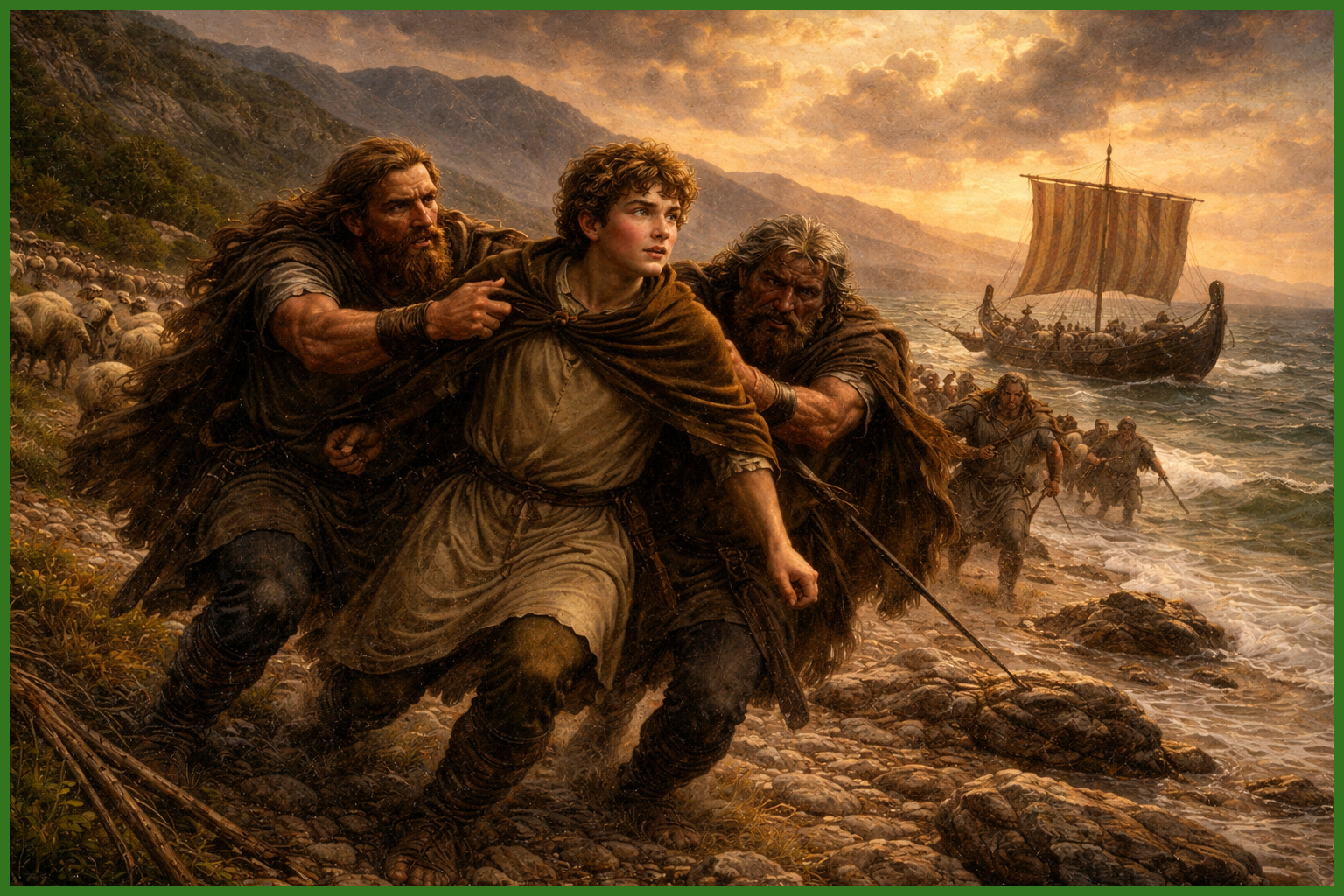 Saint Patrick was born in 385 in Roman Britain, in what is present-day Wales or western Britain. His father, Calpurnius, was a deacon and his grandfather was a priest. Patrick himself admits that as a youth he was not very devout. At about the age of sixteen he was kidnapped by Irish raiders and taken to Ireland as a slave. He worked as a shepherd for about six years, and during this time he underwent a deep conversion, praying constantly in the fields and developing an intense relationship with God.