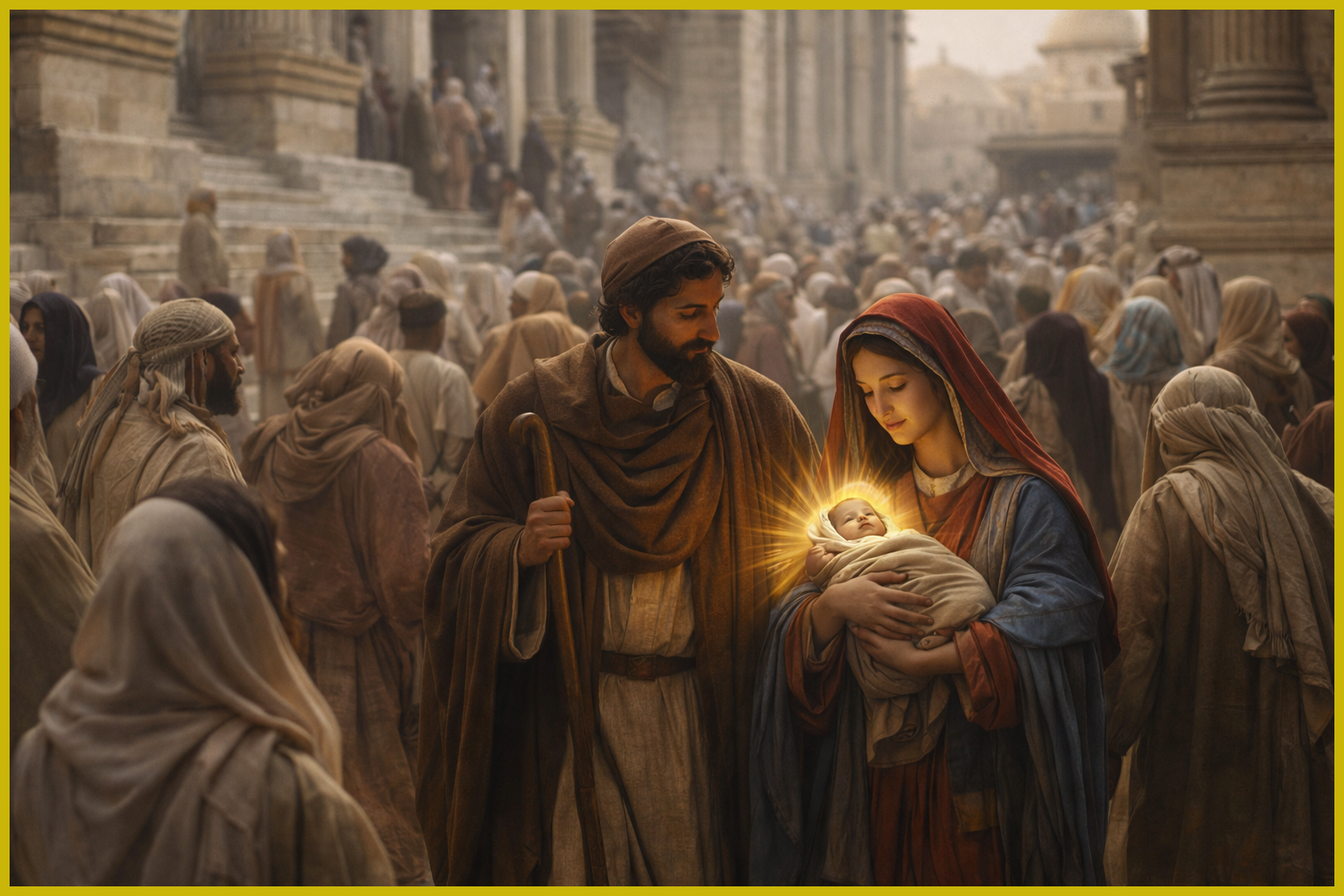 Notice the different dynamics happening between our Blessed Mother, Saint Joseph, and Jesus on the one hand, and everybody else that encounters them in the Temple on the other. We have Saint Simeon and Saint Anna the prophetess, and the prophet Simeon makes astounding prophecies. And we are told that they held him, the infant Jesus, in their arms, embraced him, treasured him. They knew that they were looking at their long-awaited salvation. They were two individuals, Simeon and Anna, who were waiting, awaiting their redemption, awaiting their salvation. How is it that others did not catch on? How is it that others just went on with their daily routine? Most likely because their hearts were not awaiting; their hearts were distracted by many other things. And so in receiving him, hearts will be revealed and will be purified. Simeon, in fact, says to our Blessed Mother, “This child is destined for the rise and fall of many, so that the thoughts of many hearts may be revealed” (Lk 2:34–35). So the child here does not judge by accusation. He is still not at the human phase of talking; he is not yet able to communicate verbally, but he judges by his mere presence. The paradox at the heart of this feast, put simply, is that the Temple receives God, and God in turn receives humanity. But this encounter is never neutral, because that same child is light for revelation, fire for purification, peace for the faithful, and contradiction for the resistant (cf. Mal 3:1–3).
