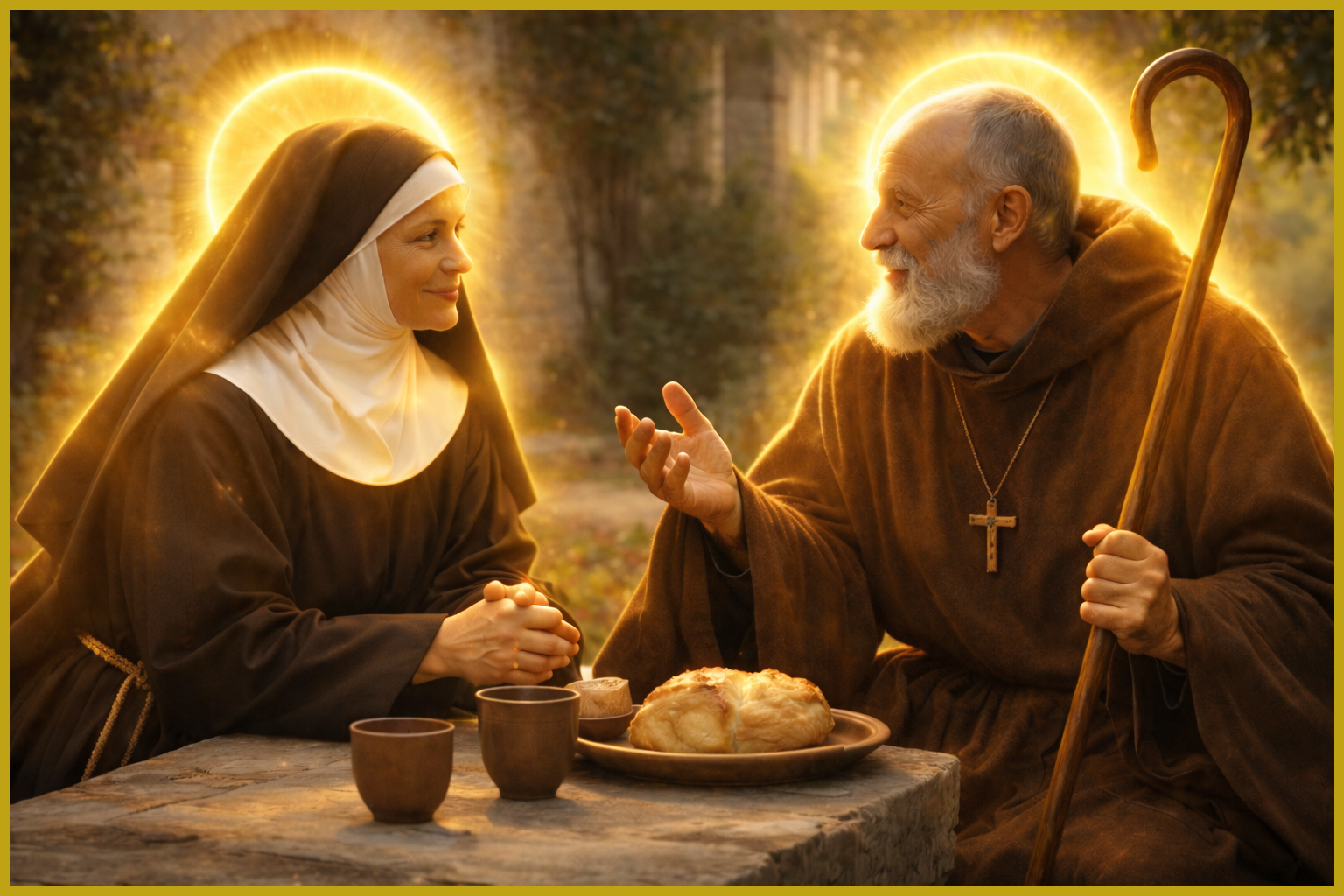 Nel Vangelo, Maria di Betania, seduta ai piedi di Gesù, incarna la stessa attitudine di Scolastica: l’ascolto totale e fiducioso del Signore. Santa Scolastica ci insegna che la preghiera è il cuore pulsante della Chiesa, che le vite più feconde sono spesso le più nascoste, e che quando l’amore ascolta profondamente Dio, tutto trova il suo giusto ordine. Attraverso la sua intercessione, impariamo ad aprire la porta del nostro cuore al Signore che desidera dimorare in noi.