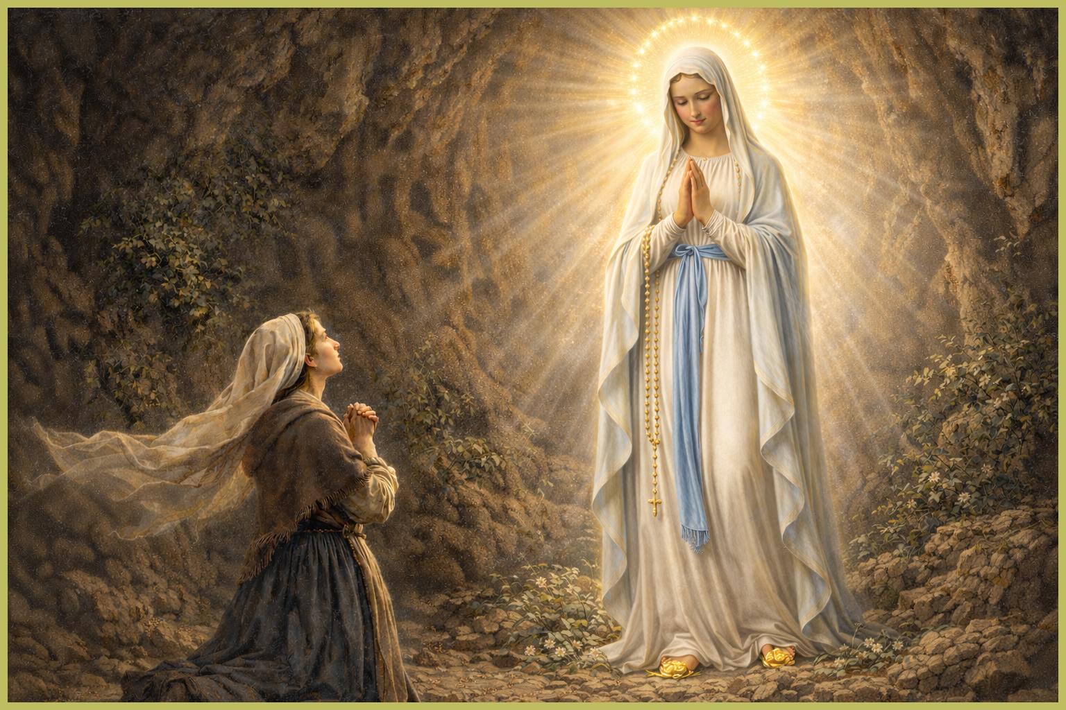 Today we celebrate the optional memorial of Our Lady’s apparitions at Lourdes, where our Blessed Mother in 1858, in Lourdes, France, appeared in this poor mill town marked by sickness, poverty, and marginalization. She appears to Saint Bernadette Soubirous, a fourteen-year-old impoverished girl who encounters a lady in the grotto of Massabielle while gathering firewood. This occurred on the 11th of February, 1858.