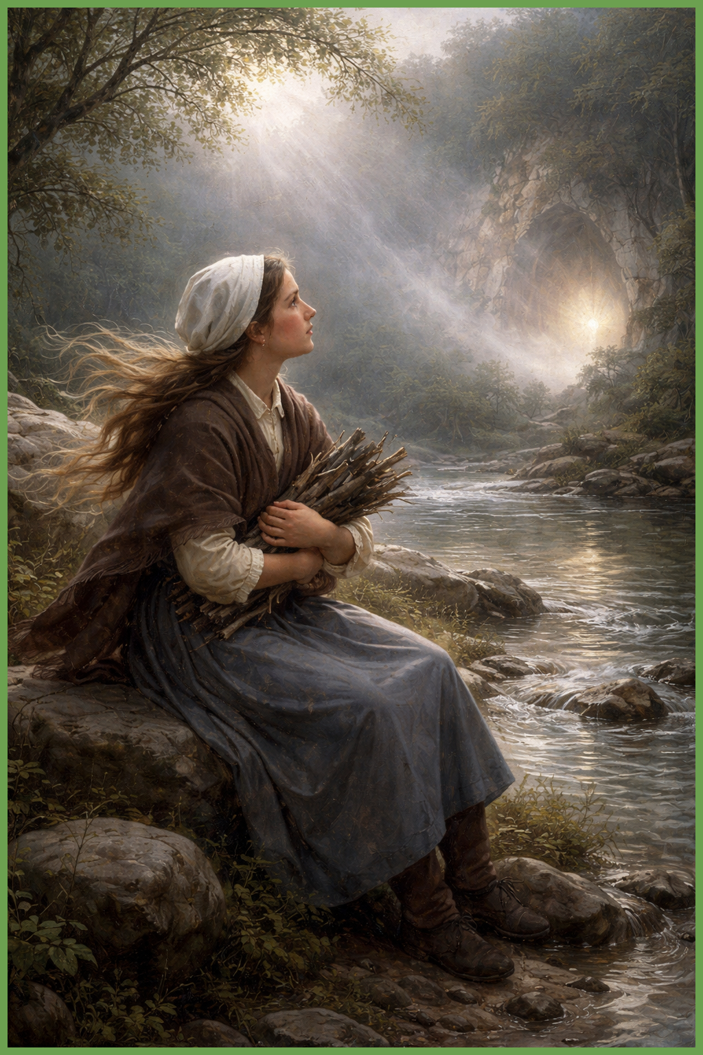 Then on the 25th of March, on the feast of the Annunciation, our Blessed Mother declares, “I am the Immaculate Conception.” Saint Bernadette, uneducated and unfamiliar with theological titles and terms, repeats the phrase verbatim to the parish priests, stunning the clergy and authorities. On the 7th of April, Saint Bernadette holds a candle flame directly against her hand during ecstasy without injury. On the 16th of July, the final apparition, Saint Bernadette sees our Blessed Mother one last time from across the river, the grotto having been fenced off by anti-Catholic authorities.