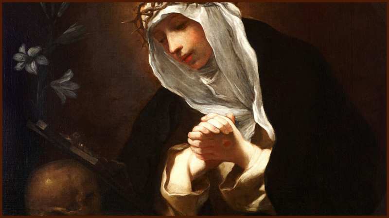 È qui che entra in gioco Santa Caterina da Siena, oggi, in occasione della sua festa, perché questo Vangelo è davvero così applicabile alla sua storia. Non sapendo né leggere né scrivere a causa di una scarsa, se non inesistente, istruzione formale, era chiaramente una di quei "piccoli" a cui Dio ha rivelato la sua grandezza. Grazie a queste speciali grazie e al fatto che dedicò la sua verginità a Dio all'età di sette anni, anche se contro la volontà dei suoi genitori che desideravano vederla alla fine sposata, divenne una persona di grande intelligenza e alla fine sarebbe stata considerata una formidabile filosofa e teologa. La frequentazione di papi, vescovi e leader politici le veniva facile e spesso fungeva da mediatrice tra loro. Fu elevata alla dignità di "Dottore della Chiesa" grazie ai suoi profondi scritti teologici. Fin dai primi anni di vita ebbe il dono speciale di comunicare misticamente con Dio.